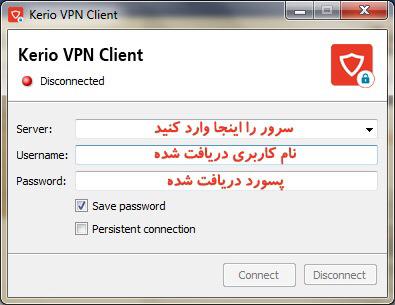 ۳- username و password خود را وارد کرده و Connect را بزنید.
