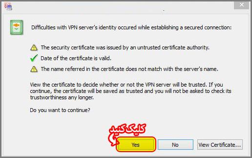 بعد از زدن کانکت هر پیغامی داد yes را بزنید
